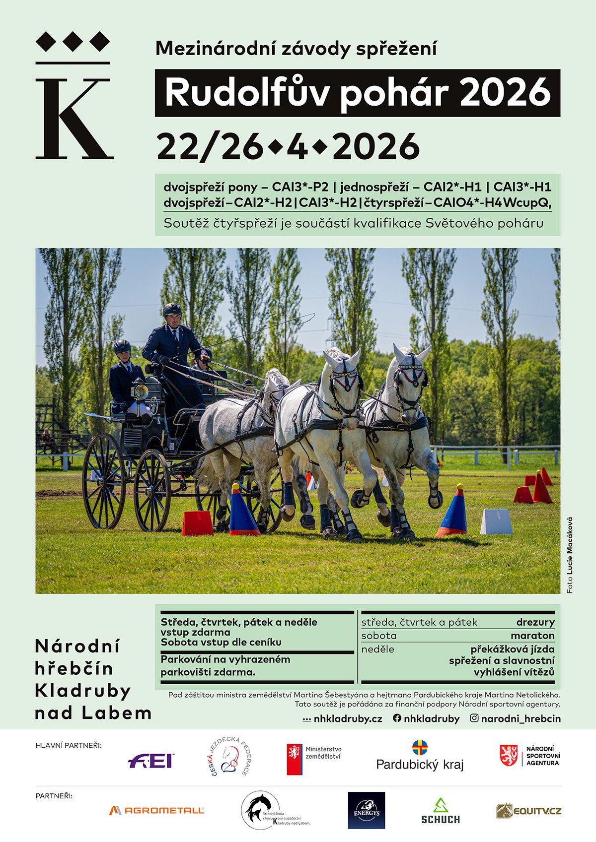 | 22. – 26. 4. | RUDOLFŮV POHÁR - PLAKÁT Mezinárodní závody spřežení | Kladruby nad Labem | |