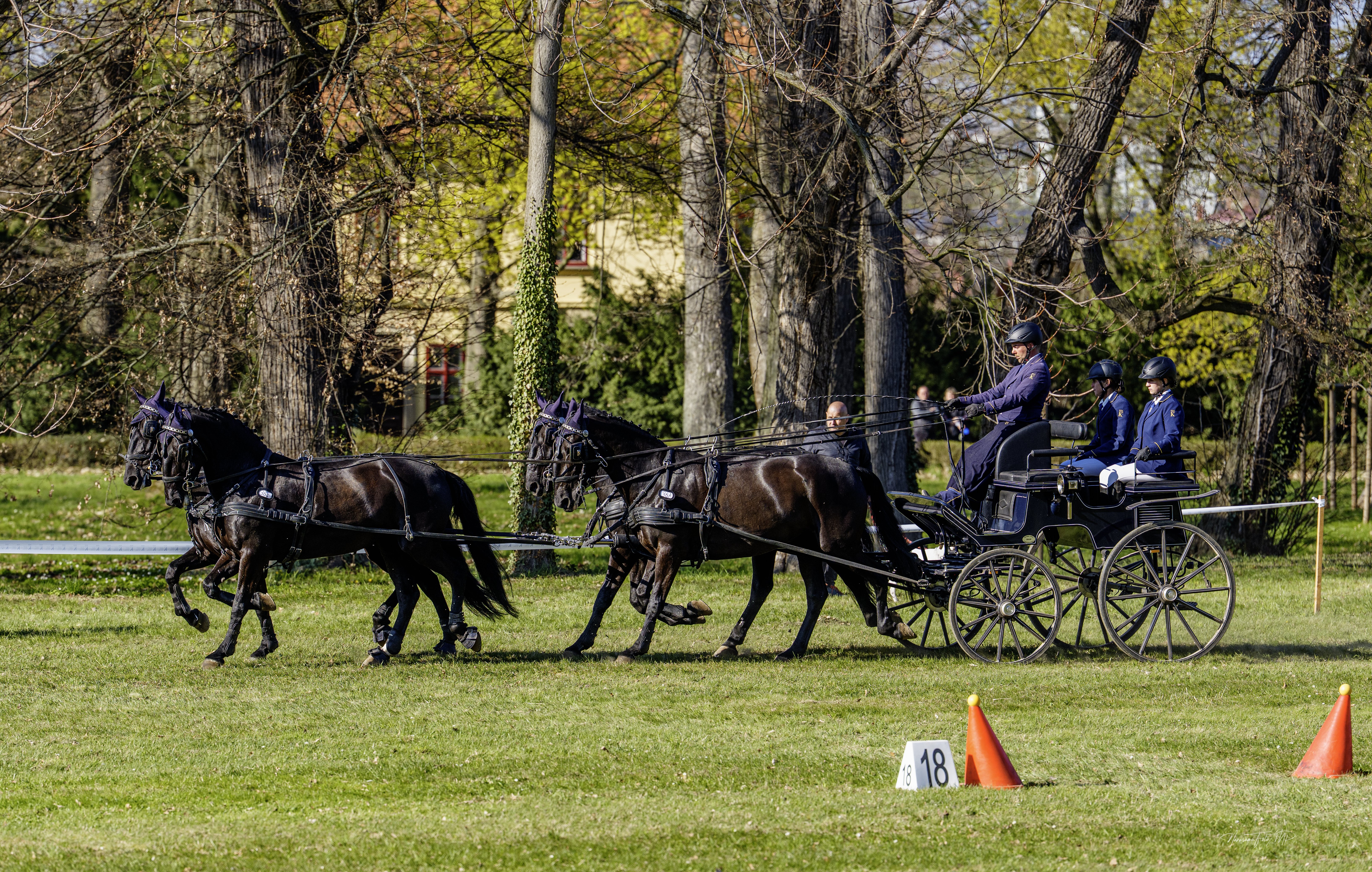 Druhou dubnovou sobotu zahájil národní hřebčín ve Slatiňanech novou závodní sezónu. Celkem 35 závodníků jednodenních závodů spřežení odstartovalo drezurní úlohou na kolbišti Na Rembáni a pokračovalo překážkovou jízdou mezi kužely na tzv. pólo place v zámeckém parku Státního zámku Slatiňany. V kategorii jednospřeží s drezurní úlohou 2* zvítězila Zuzana Jourová s valachem Falco 27, na druhém místě se umístil David Lukeš s valachem Izak (GI) a třetí místo obsadil Samuel Sluka z národního hřebčína se starokladrubskou vrankou Inglesa (S XV). Druhou soutěž jednospřeží s drezurní úlohou 3* ovládl, stejně jako v loňském roce, David Soukup s klisnou Cortina 13. Následovala kategorie dvojspřeží pony, kde se nejvíce dařilo Lucii Černé s hřebci Vinium Casino a Vinium Dý Dý. Soutěž dvojspřeží ovládl závodník národního hřebčína Vladimír Moudrý s hřebci Sacramoso Selandia XXIII a Sacramoso Secada XX. Se svým druhým dvojspřežím Solo Mantilla XXIX-49 a Romke Samanada X-54 vybojoval třetí místo. V královské kategorii se na prvních dvou příčkách umístili reprezentanti národního hřebčína – Jiří Nesvačil jun. se starokladrubskými bělouši na prvním místě a Petr Novák se starokladrubskými vrankami na místě druhém. Již za necelé dva týdny se můžete těšit na největší sportovní událost pořádanou národním hřebčínem – Mezinárodní závody spřežení Rudolfův pohár, které se uskuteční od středy 22. do neděle 26. dubna.